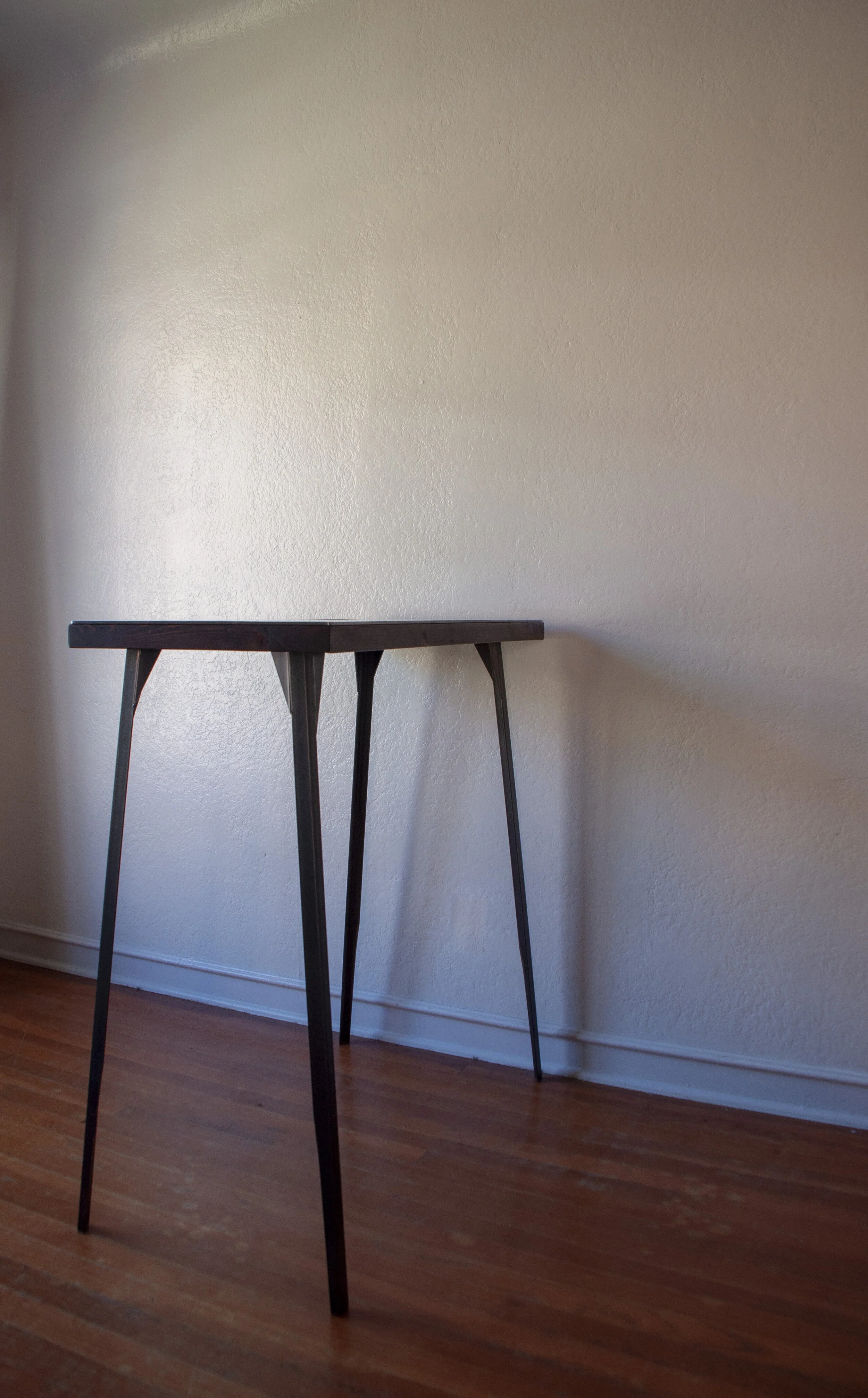Formed steel top. Poplar base.